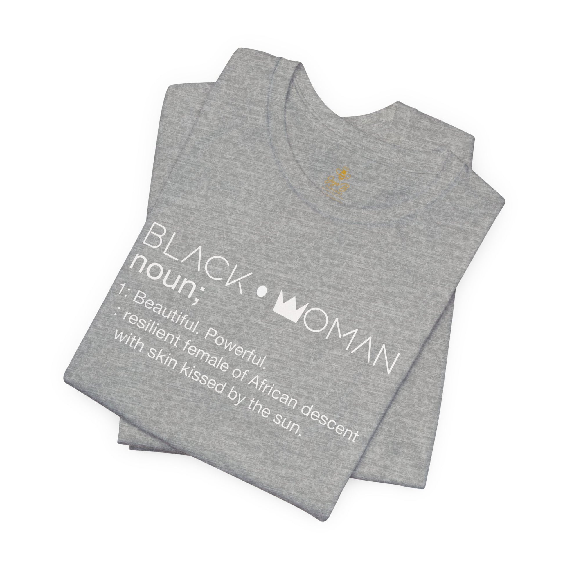 This design celebrates the strength and radiance of Black women with a clean, modern layout and an empowering definition: