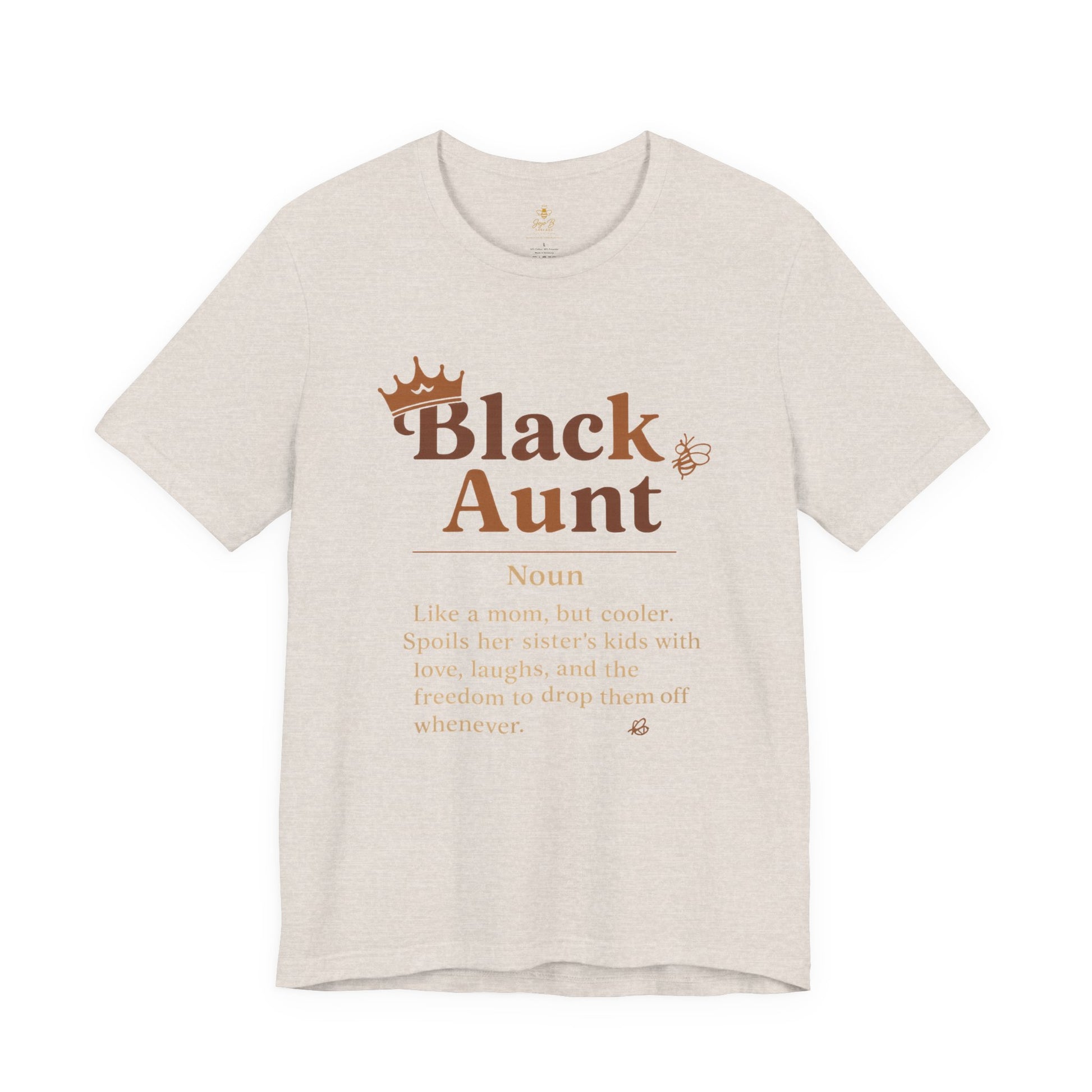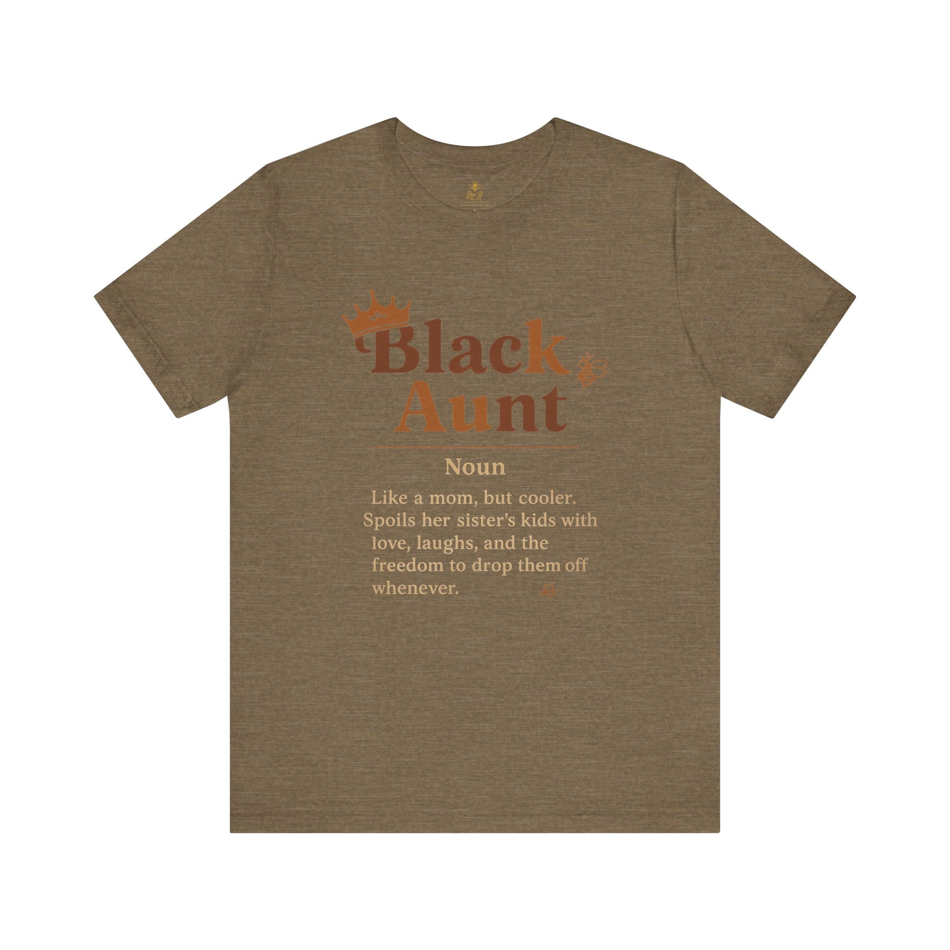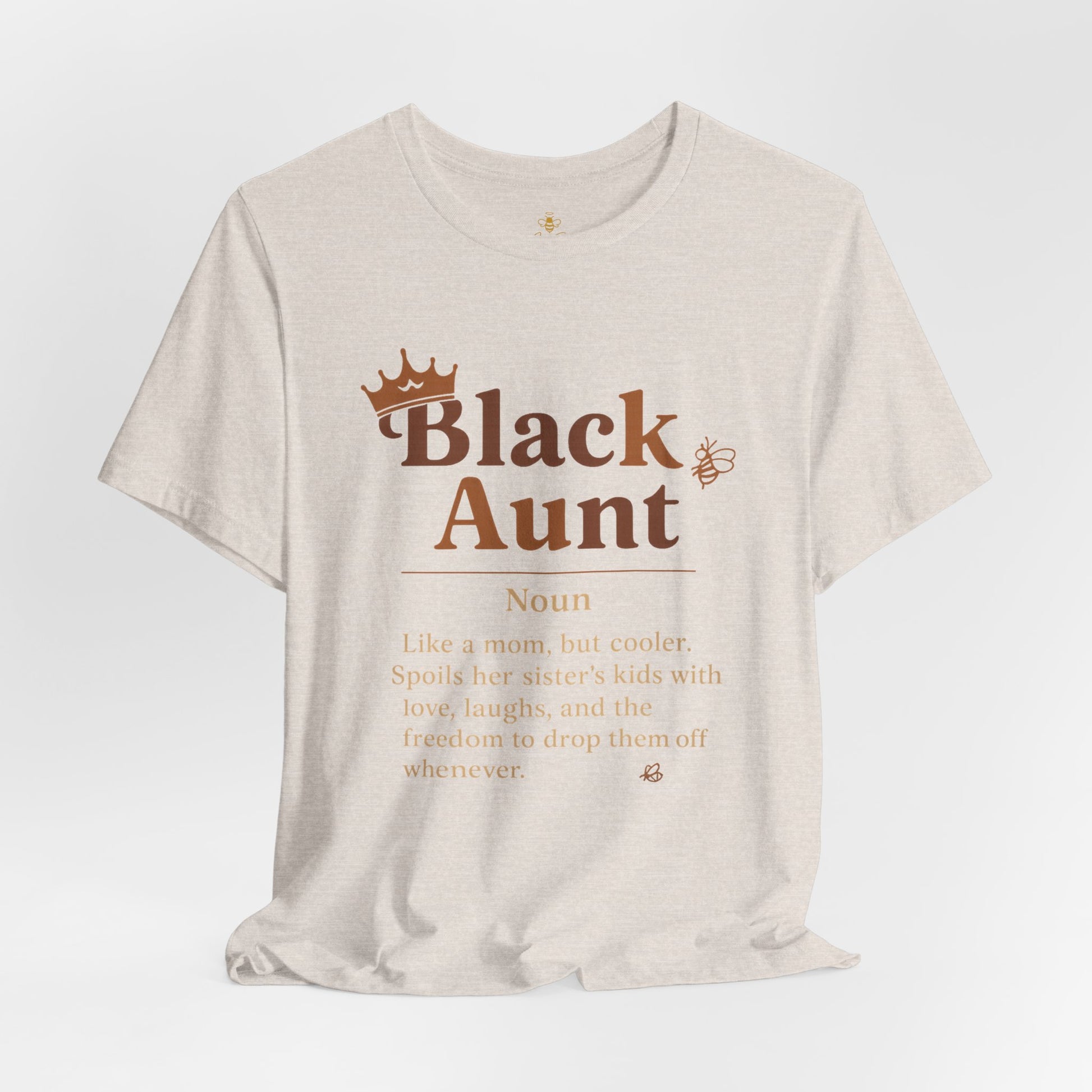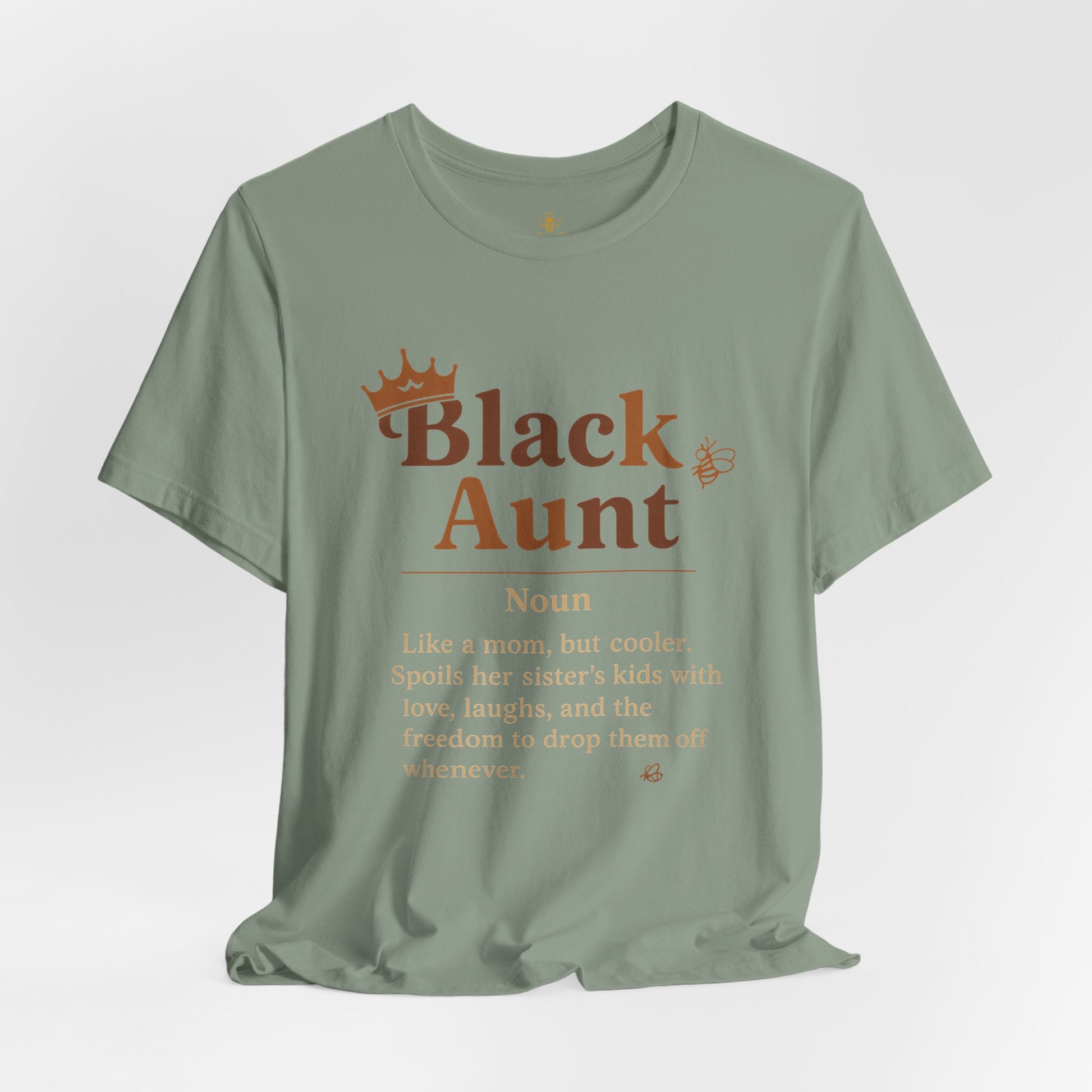 Celebrate Black auntie vibes with this bold, funny, and fabulous tee! Featuring a playful definition that highlights the fun, freedom, and fierce love only an aunt can give, this shirt is perfect for every proud Black Aunt out there. Whether you're spoiling your nieces and nephews or just flexing your favorite title, this is your new go-to statement piece.