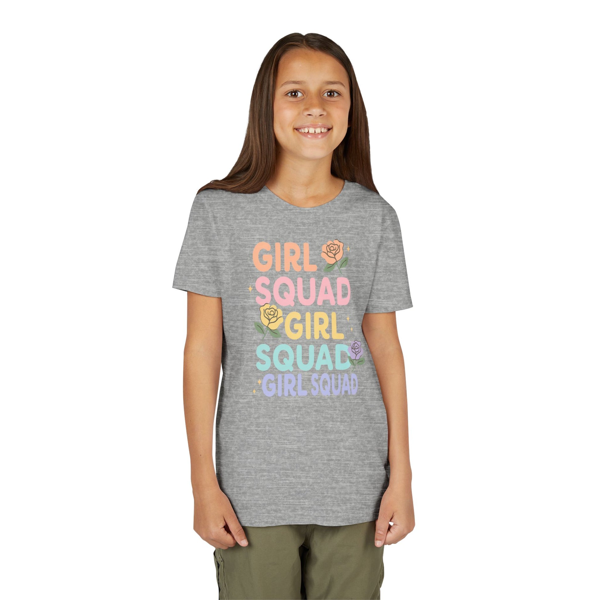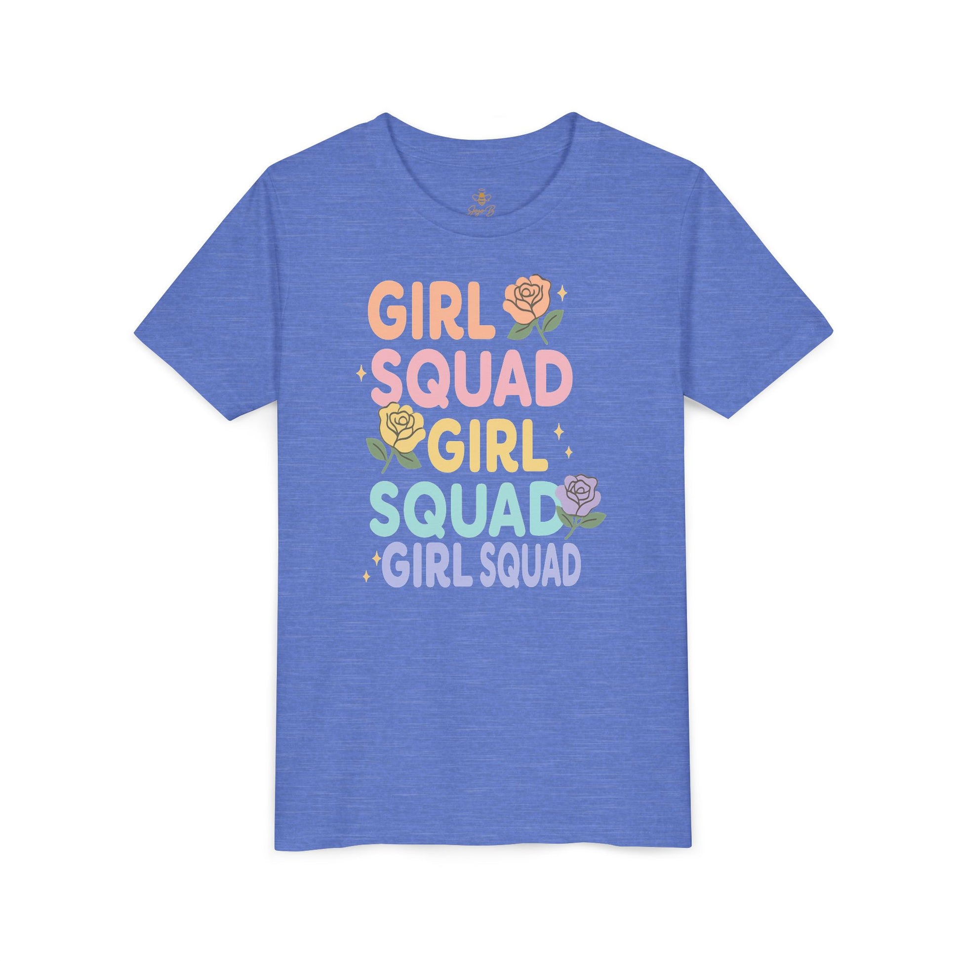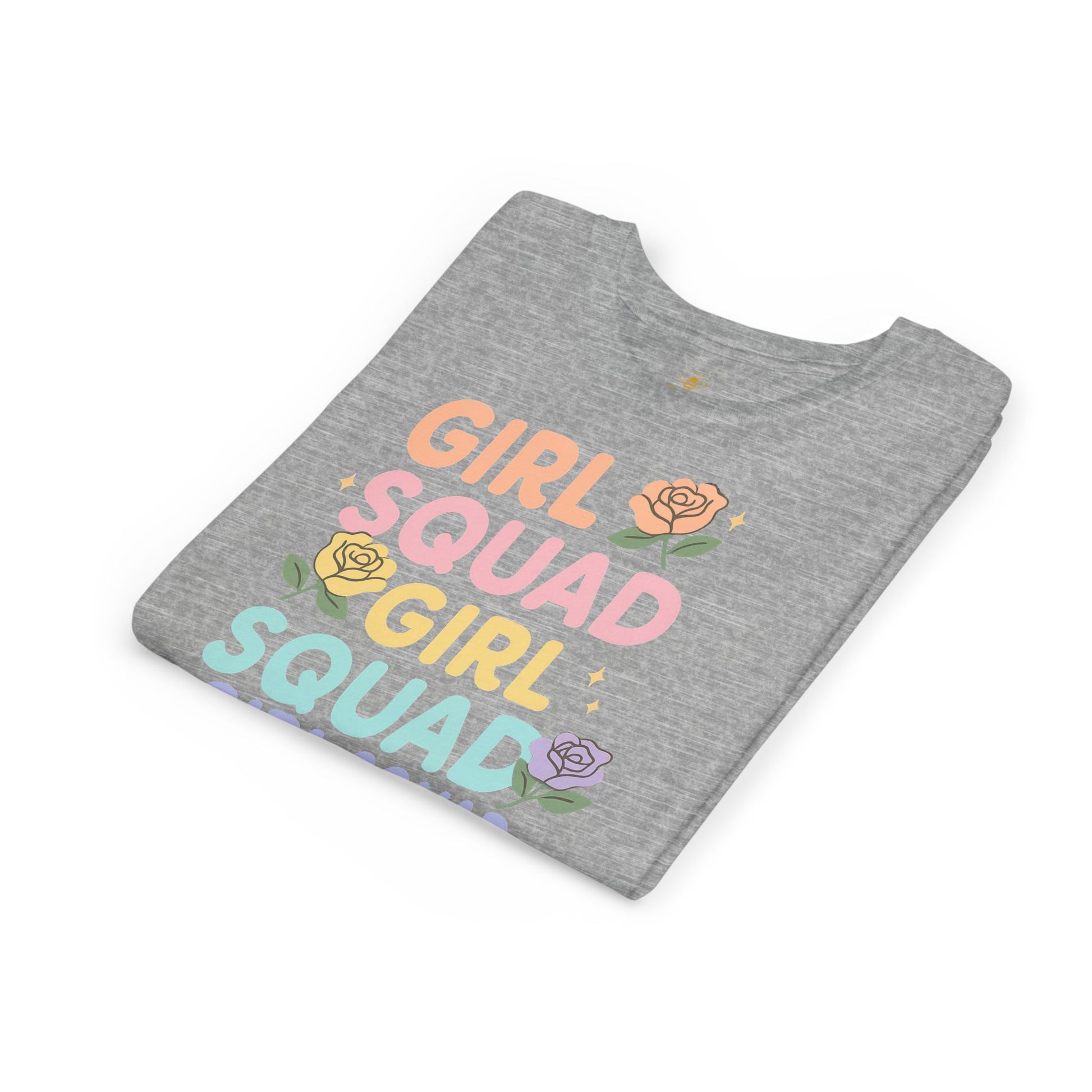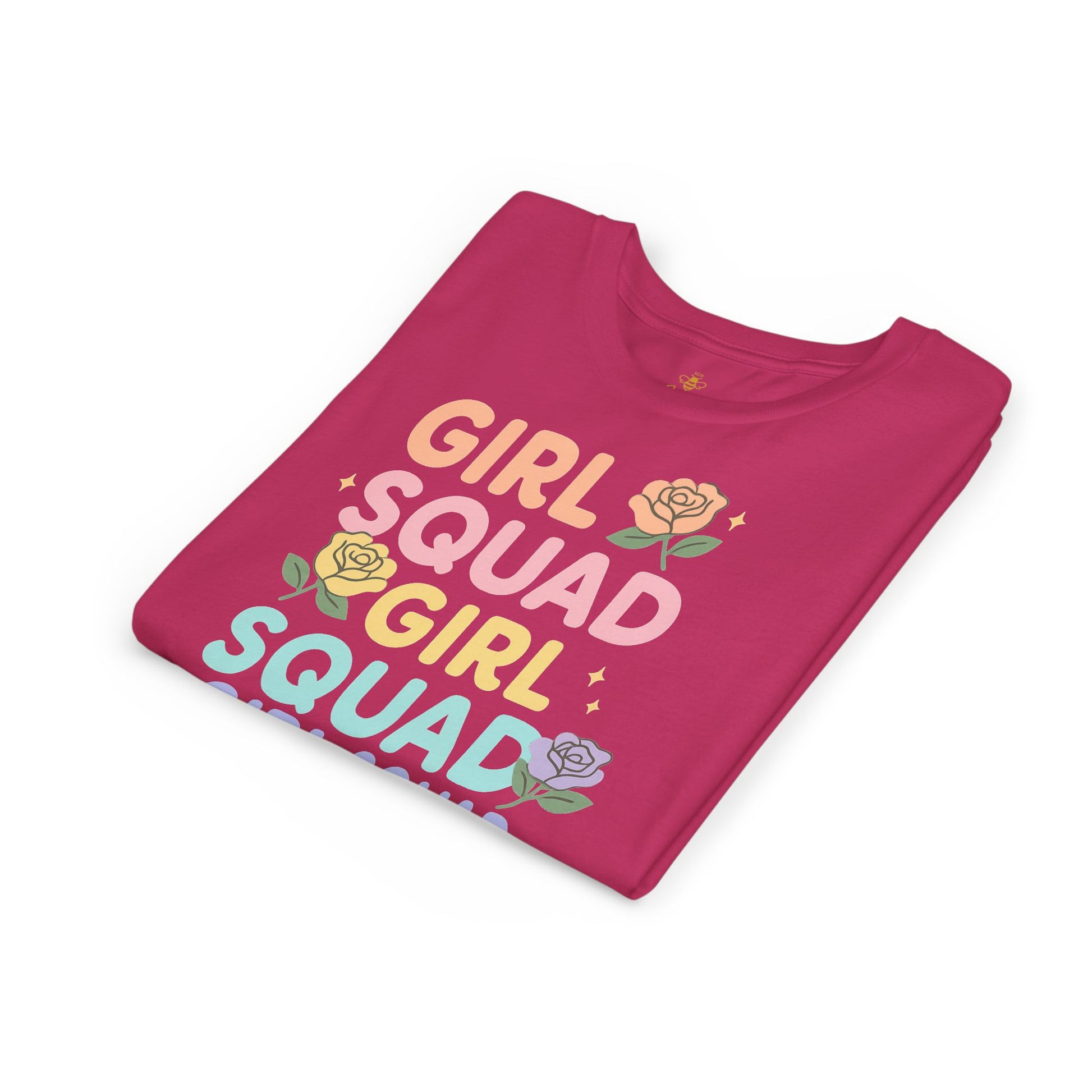 Let her shine with this vibrant and empowering "Girl Squad" tee, designed for little leaders with big hearts. Featuring bold outlined lettering, a standout red rose, and a repeating pattern that symbolizes unity and strength, this design is perfect for besties, sisters, and all the girls who lift each other up.