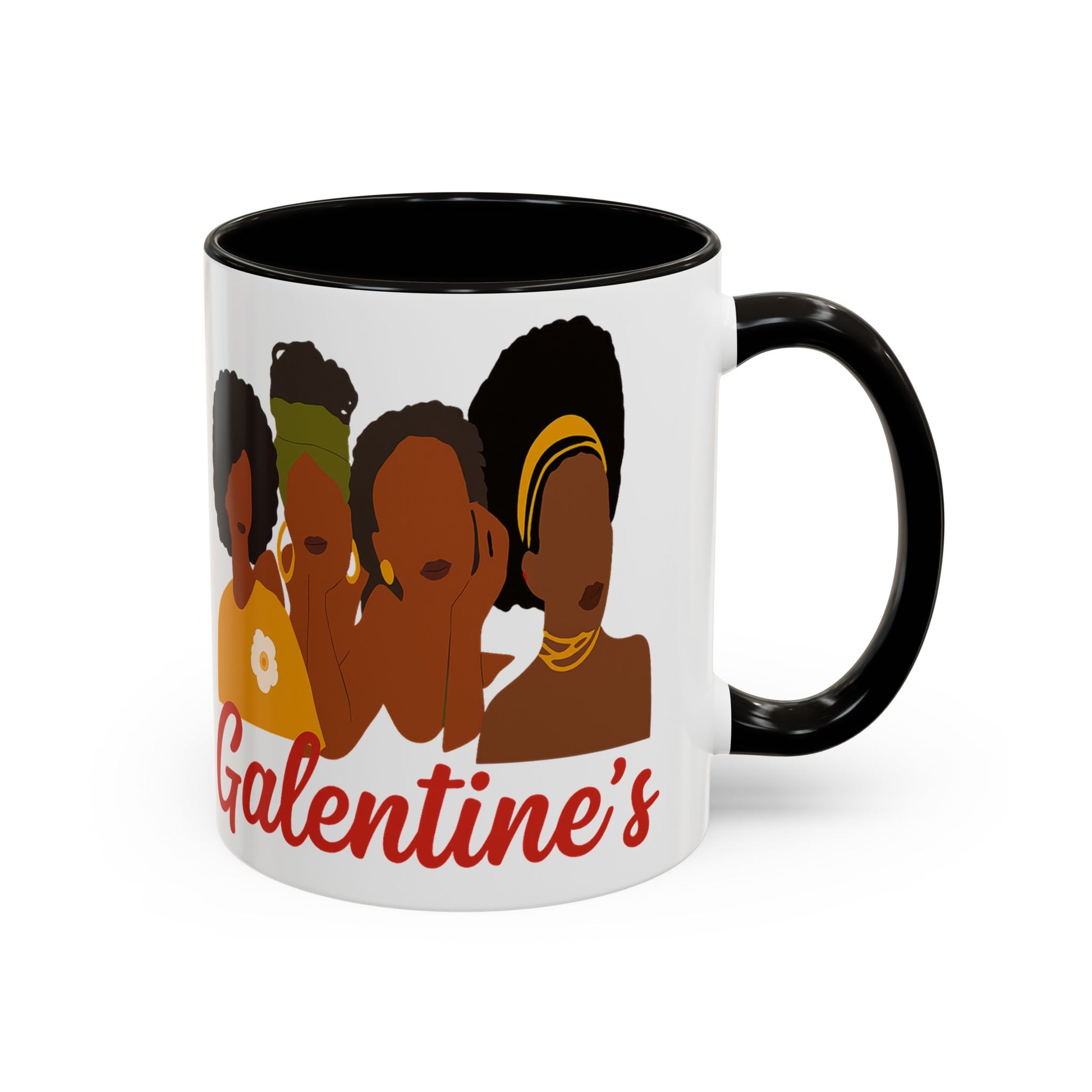Celebrate sisterhood, style, and strength this Galentine’s Day with a mug that honors the beauty of Black women and the power of friendship. Featuring a modern, minimalist illustration of four fierce queens and the word “Galentine’s” in bold red script, this mug is all about loving your girls loud and proud.