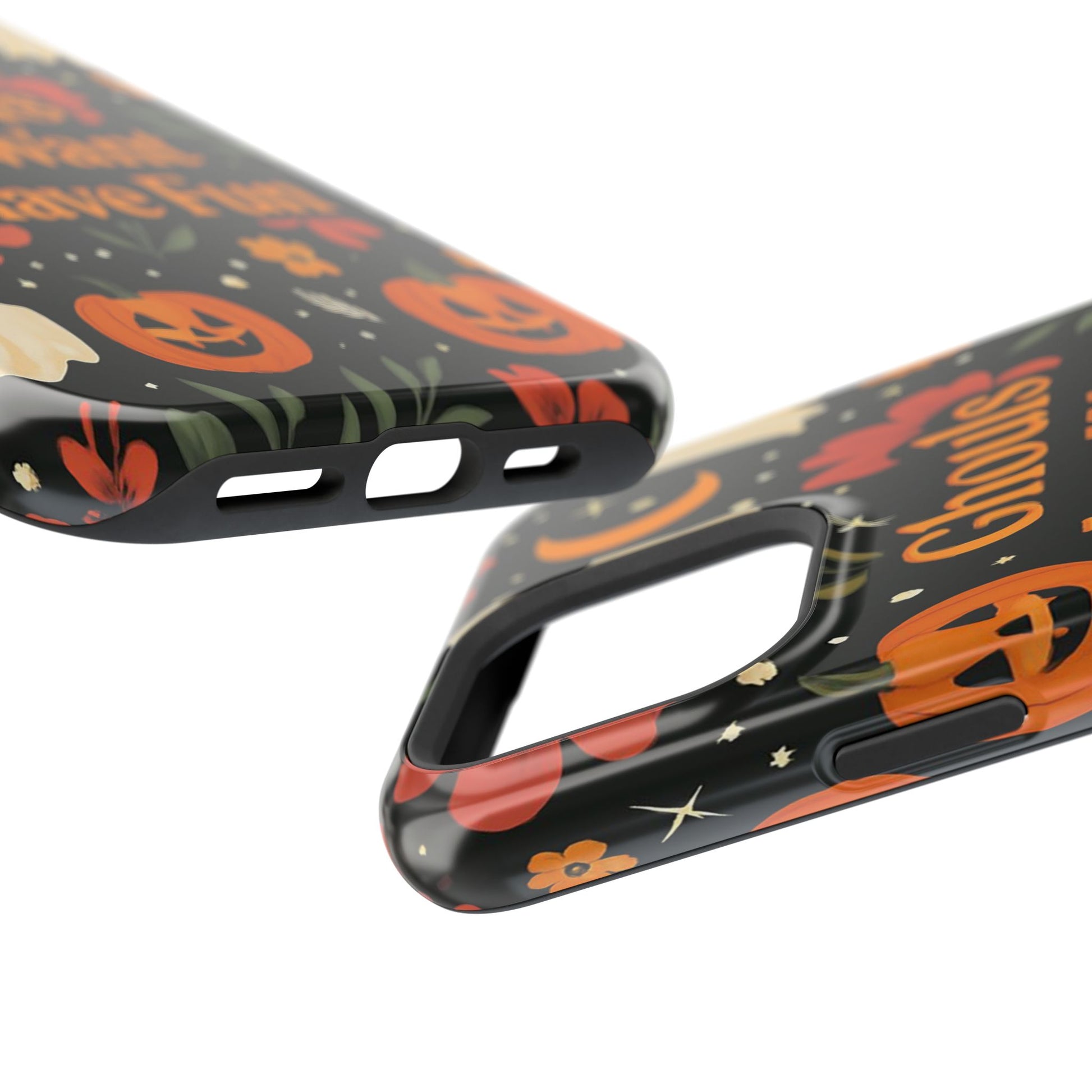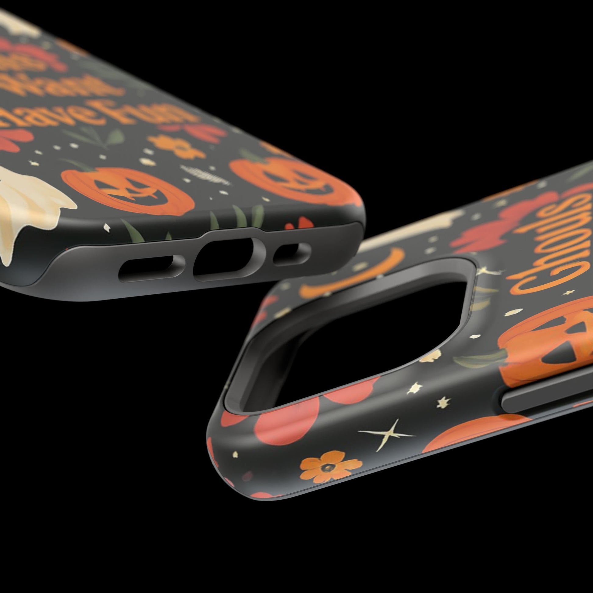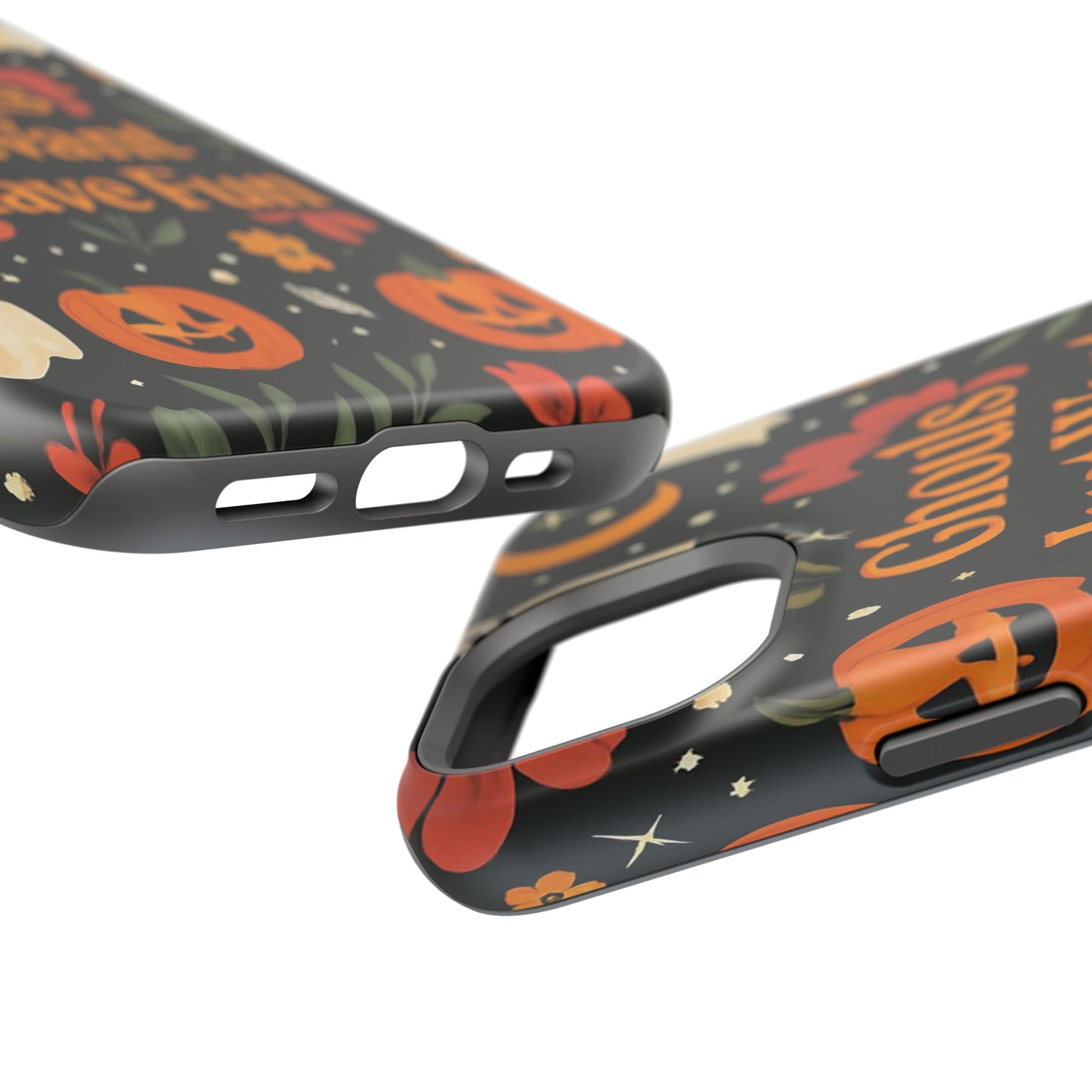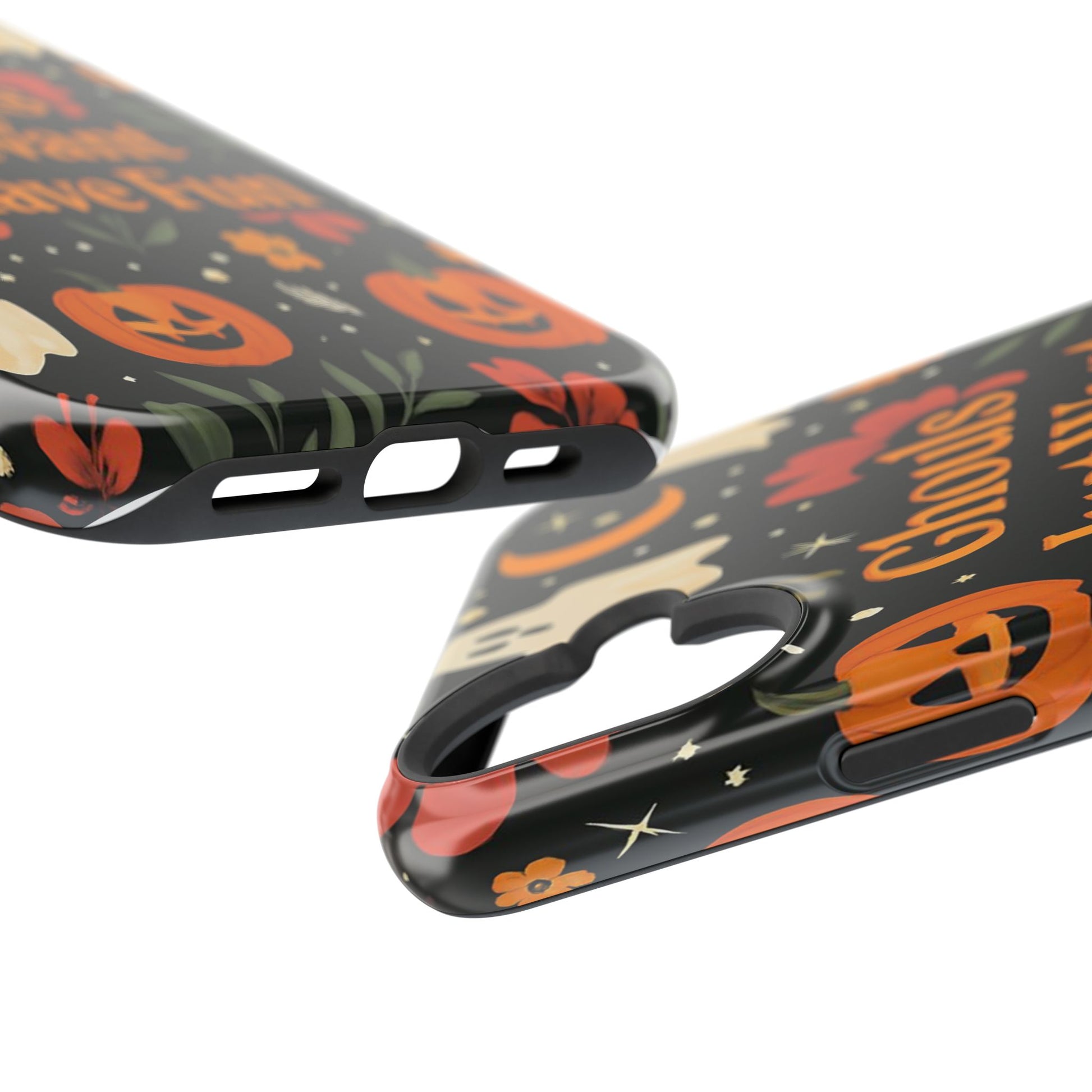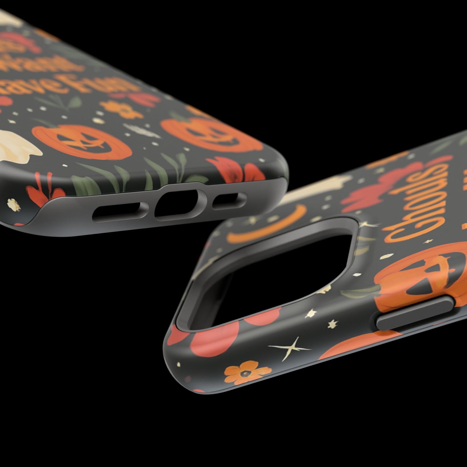 Our Ghouls Just Want To Have Fun iPhone Case brings Halloween flair to your everyday style. Featuring playful ghosts, cheerful pumpkins, and fall florals on a moody black backdrop, this design screams (in the cutest way) fall vibes and ghoul power.