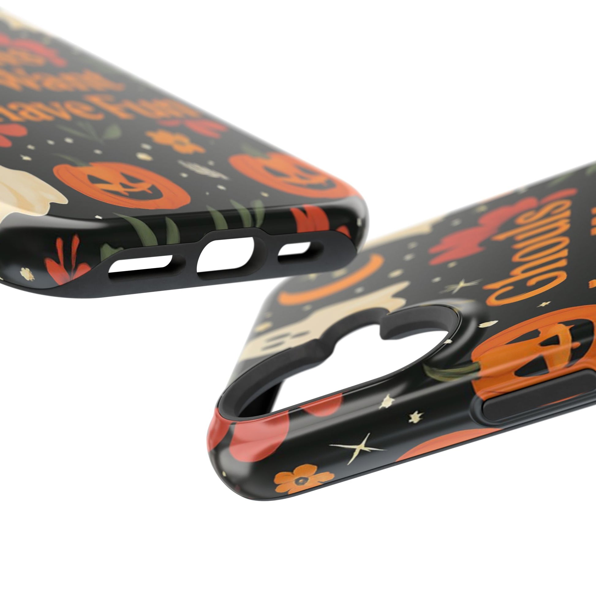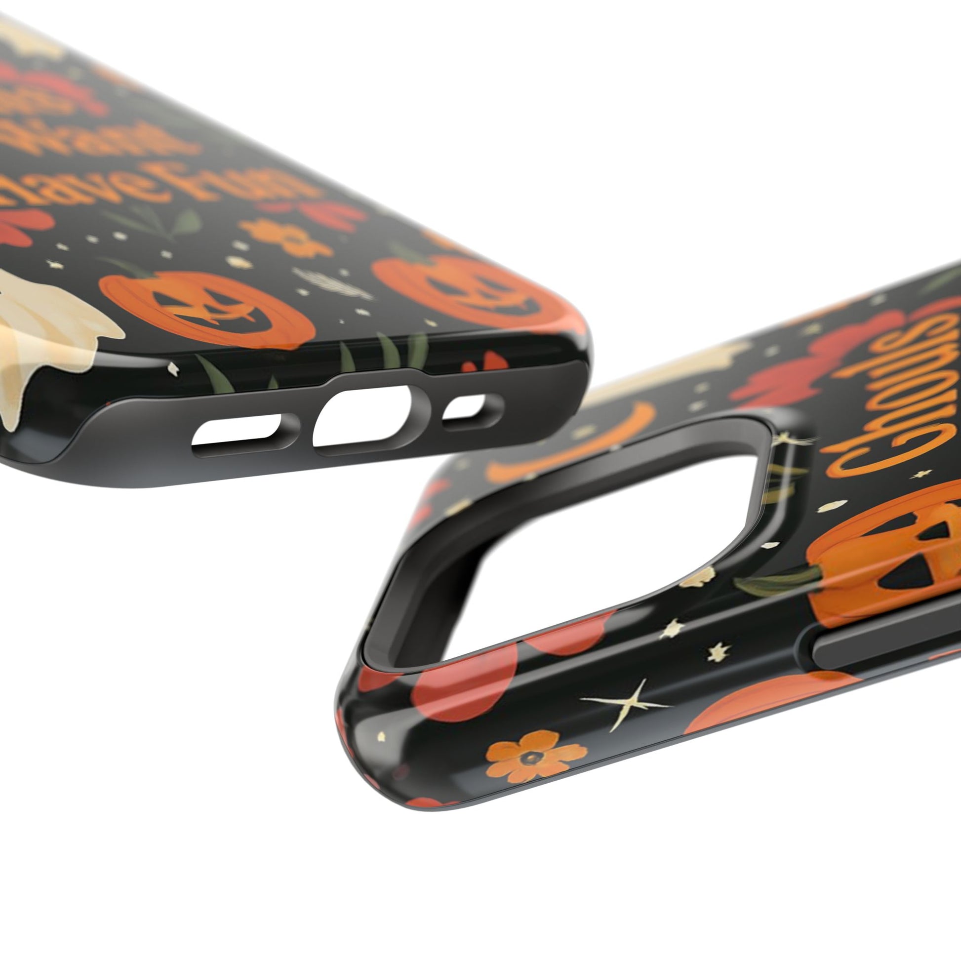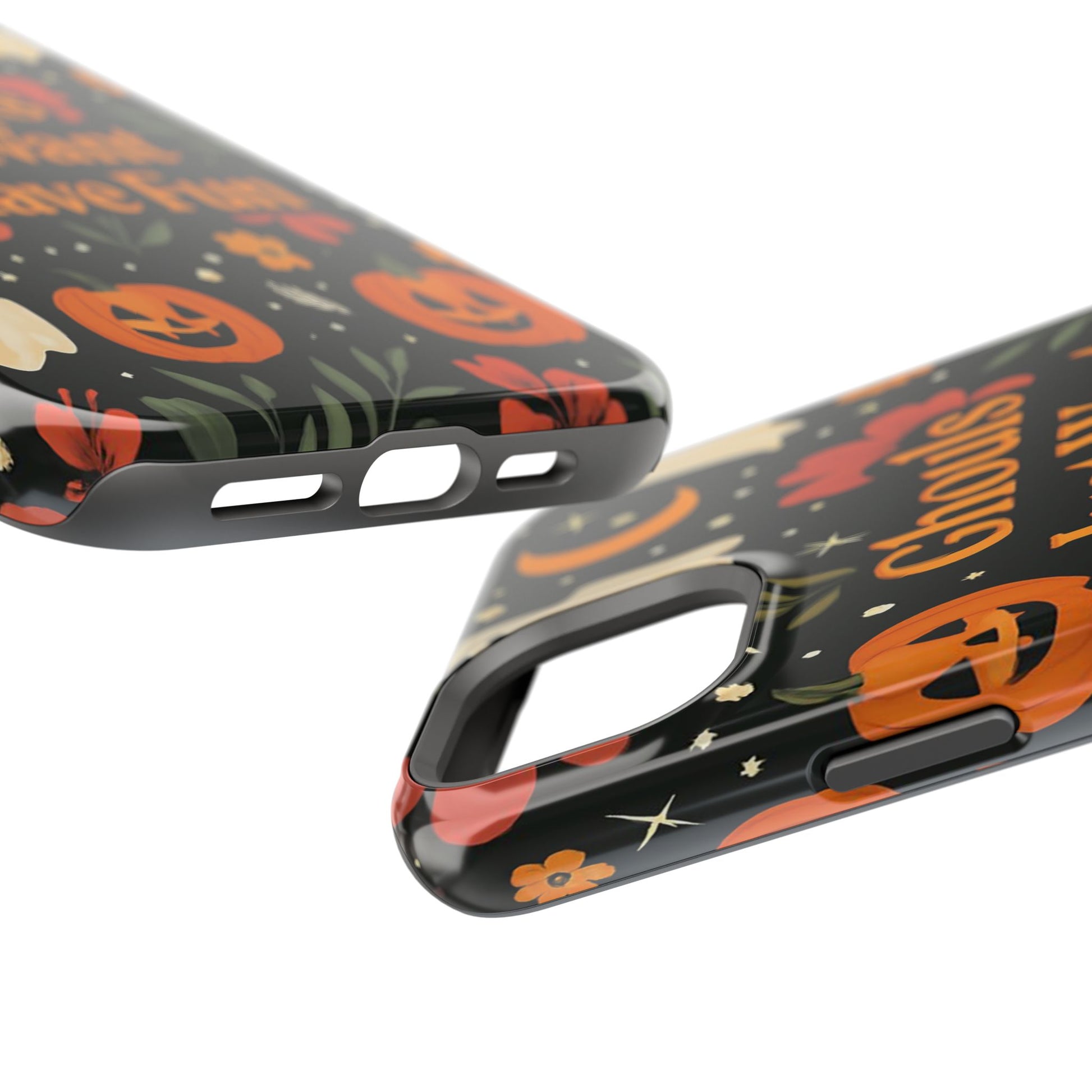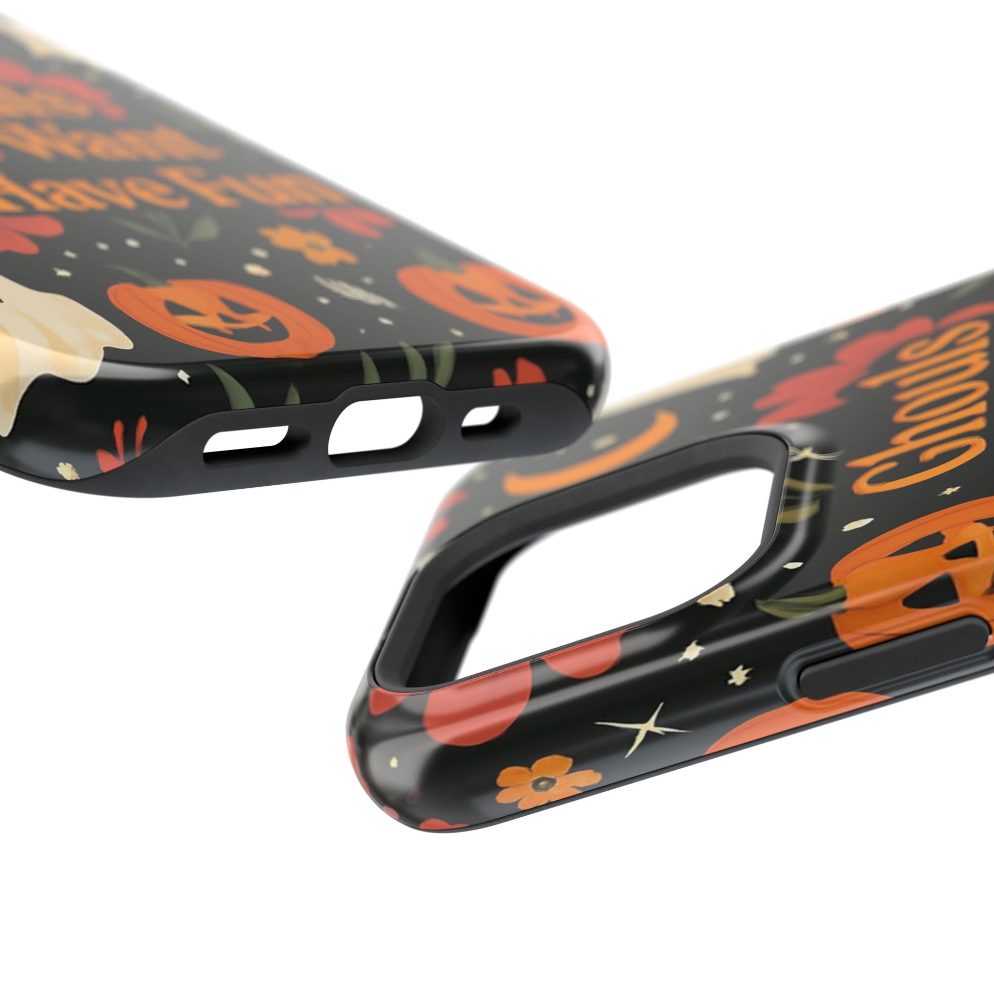Our Ghouls Just Want To Have Fun iPhone Case brings Halloween flair to your everyday style. Featuring playful ghosts, cheerful pumpkins, and fall florals on a moody black backdrop, this design screams (in the cutest way) fall vibes and ghoul power.