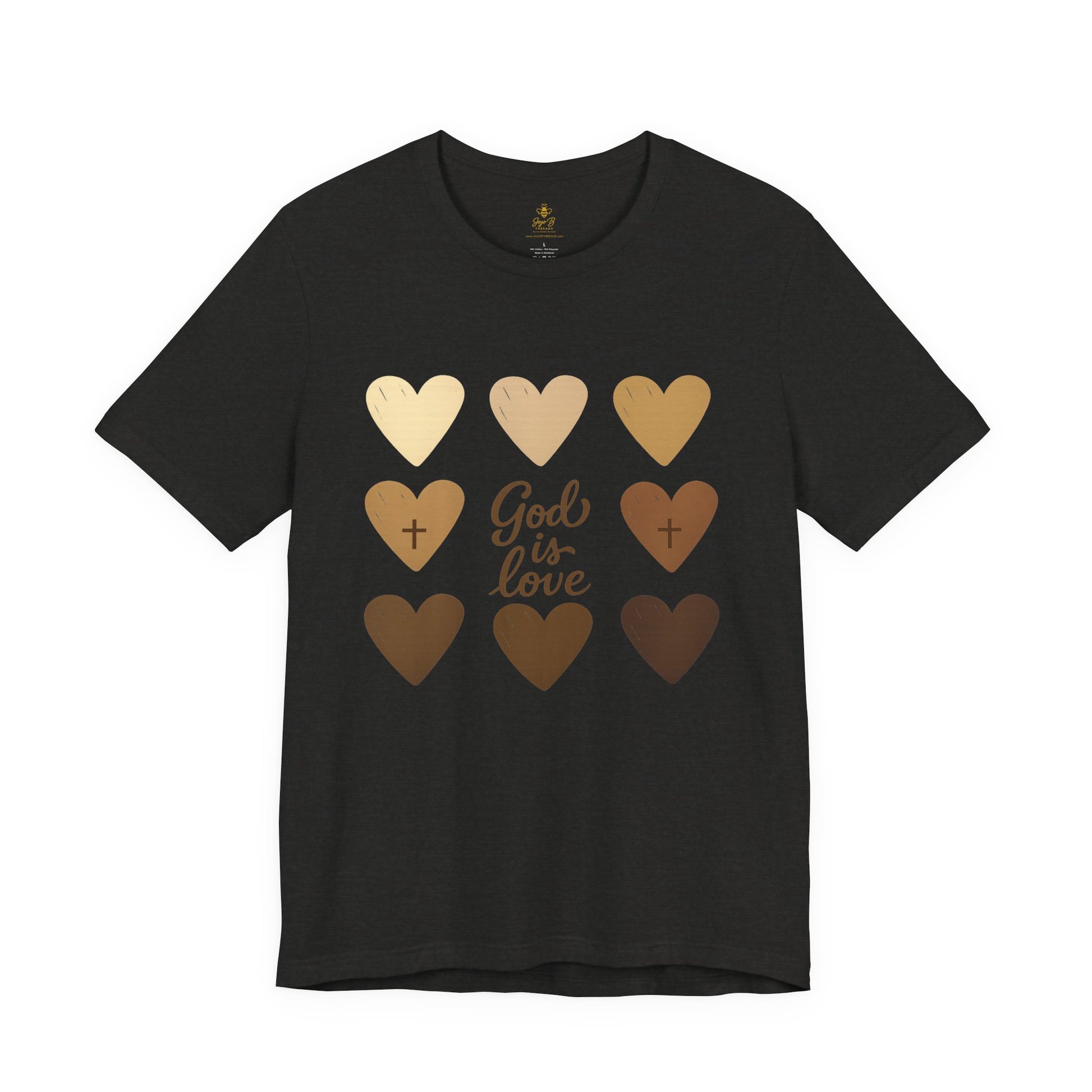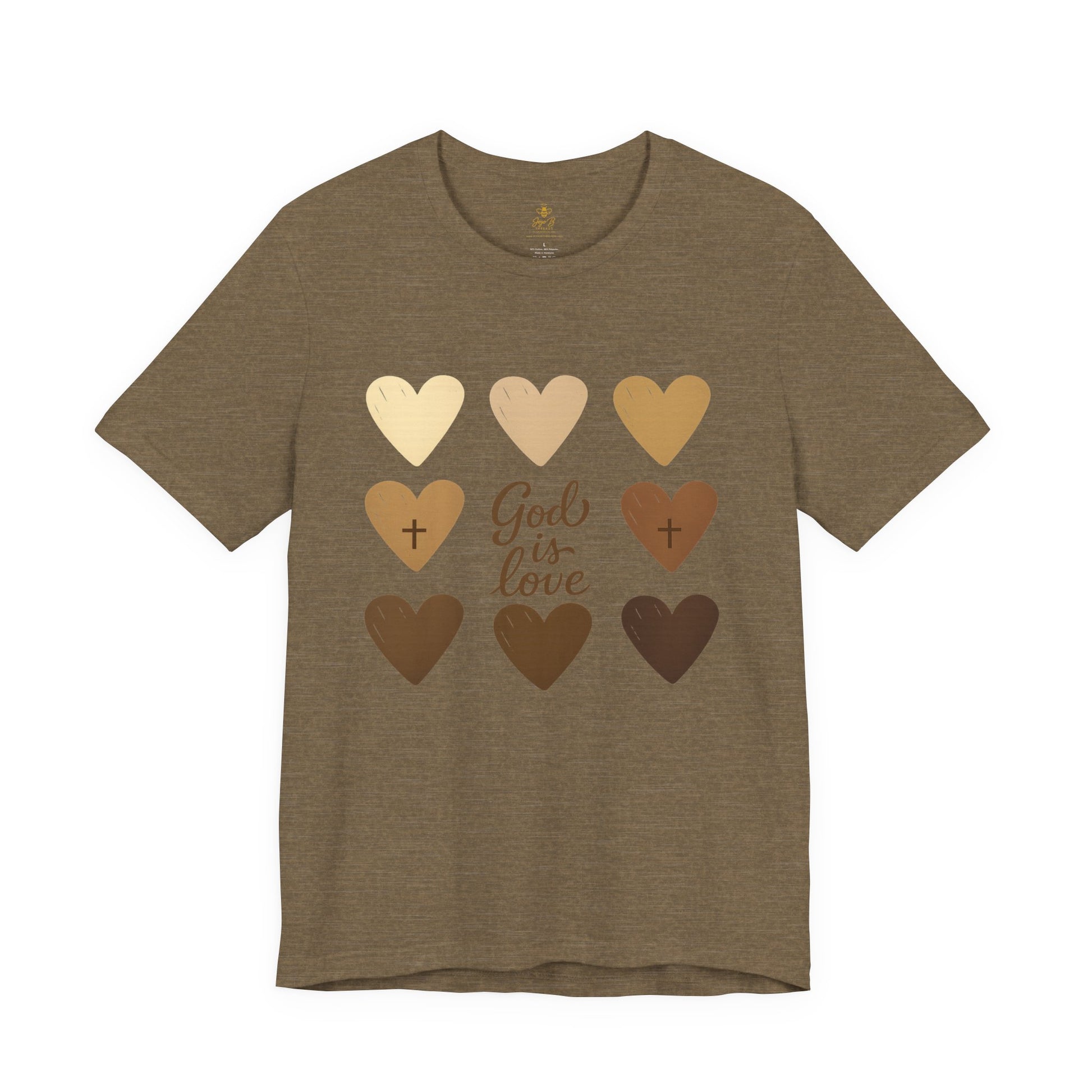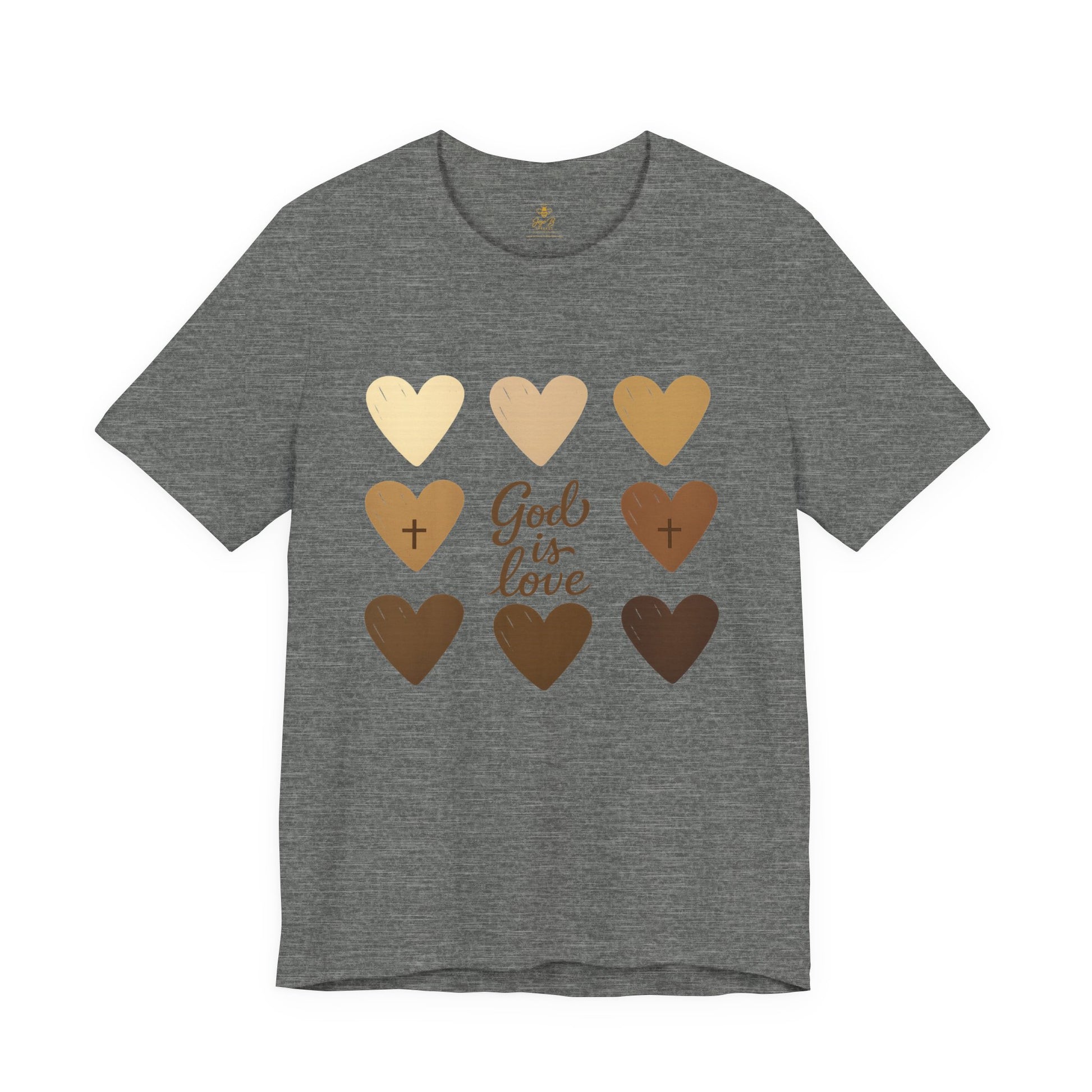 Celebrate the beauty of unity and divine love with this heartwarming "God Is Love" design. Featuring nine hand-drawn hearts in various skin tones, this shirt is a bold reminder that God’s love knows no boundaries—race, color, or culture. Perfect for spreading faith, inclusion, and kindness in every step you take.