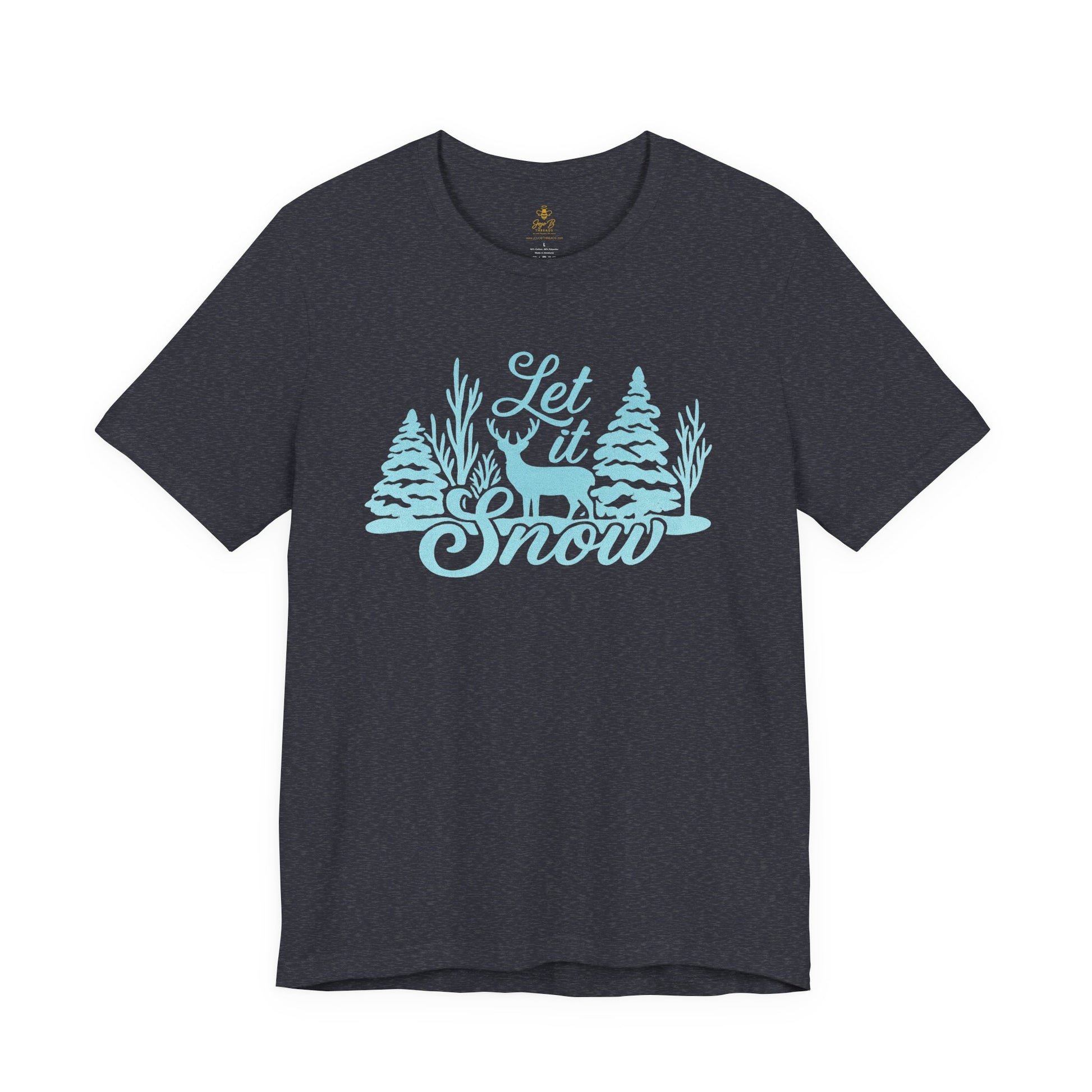 Embrace the magic of the season with our "Let It Snow" winter wonderland tee! Featuring a serene forest scene with pine trees, bare branches, and a majestic reindeer, this rustic design captures the peaceful beauty of snowy days. Perfect for cozying up by the fire or heading out for holiday fun, it’s a charming way to celebrate the chill in the air. Designed with neutral tones on a transparent background, it pairs beautifully with deep red, forest green, navy, or heather gray shirts. A must-have for snow lovers, winter adventurers, and festive spirits!.: Made with 100% Airlume combed and ring-spun cotton, a lightweight fabric (4.2 oz/yd² (142 g/m²)) that is easy to layer, breathable. Perfect for active and leisure wear.