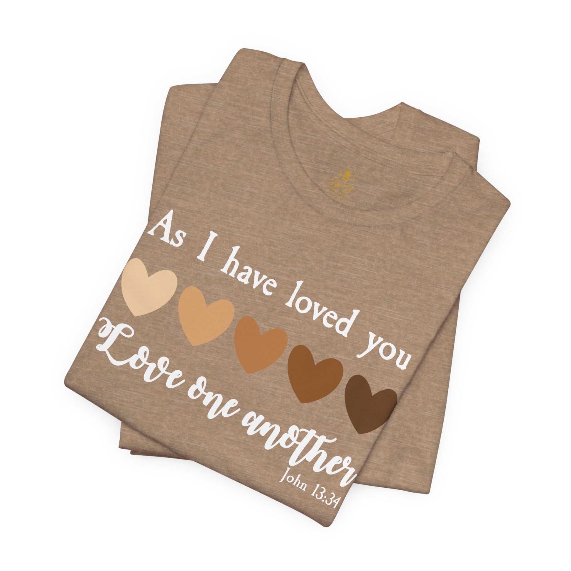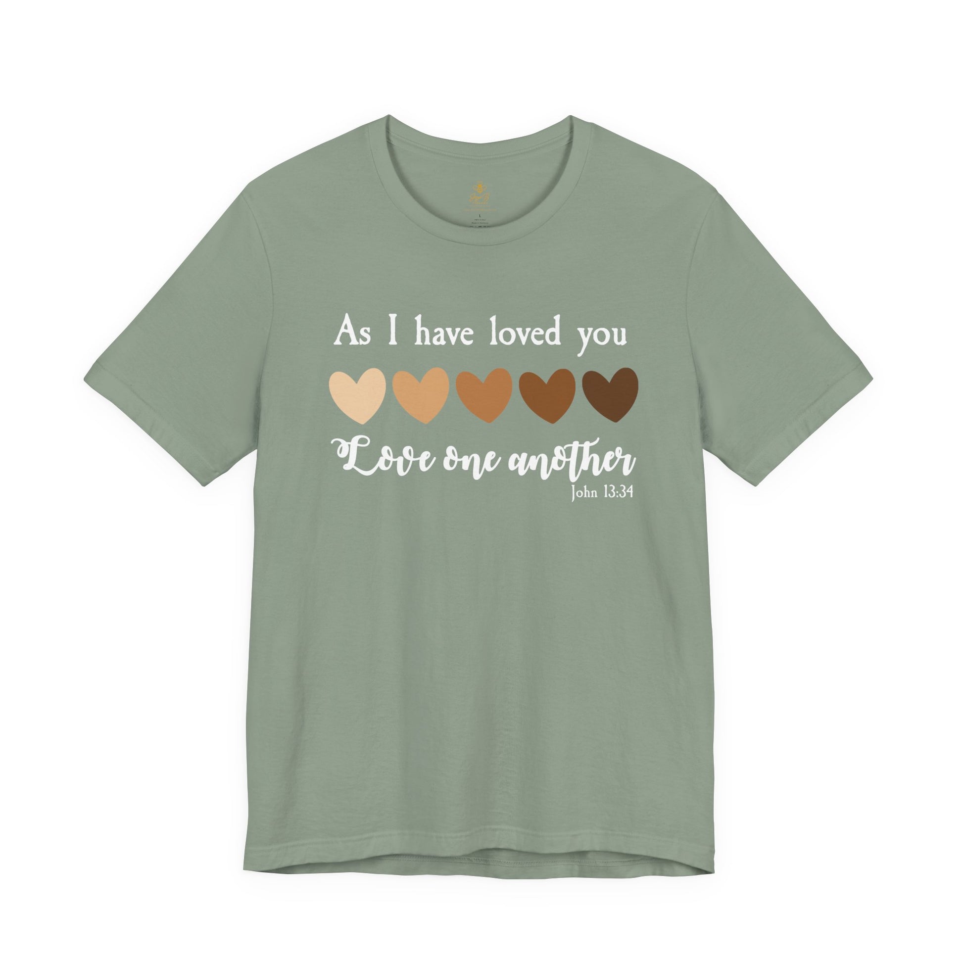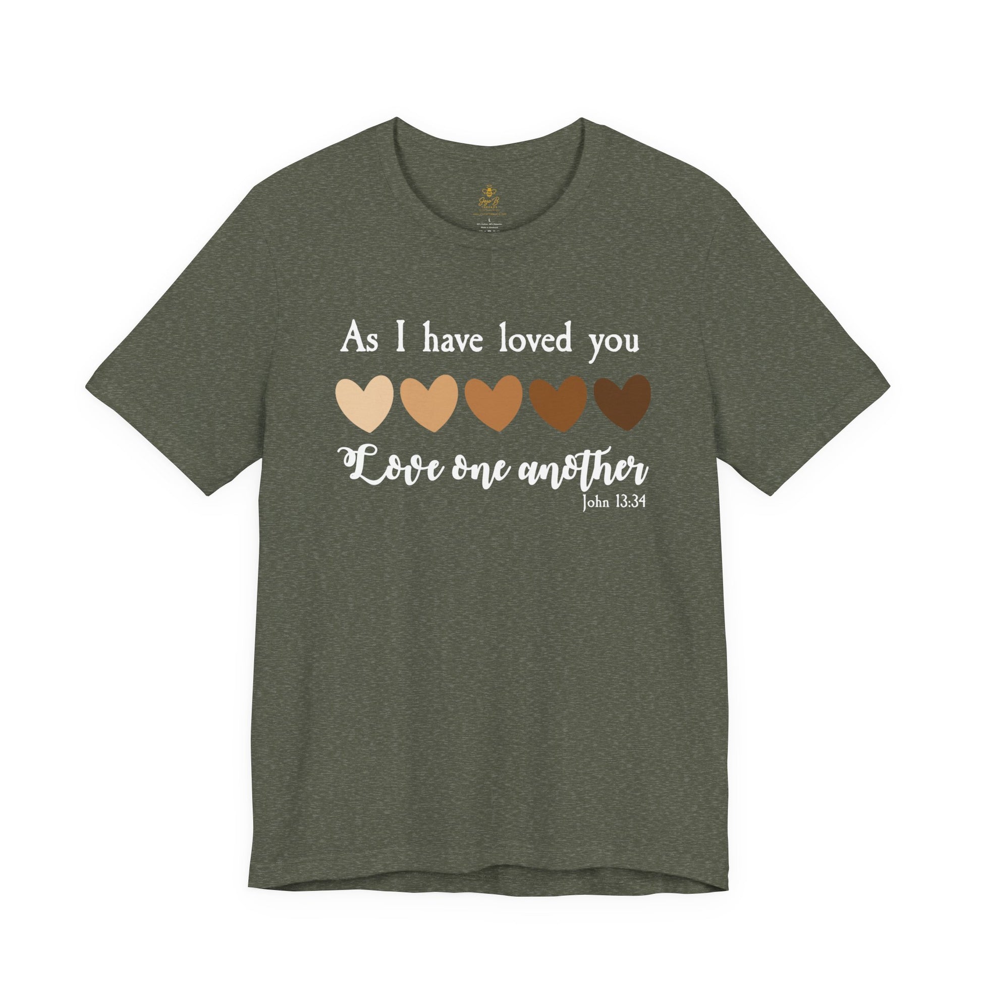 Spread love and faith with this beautifully inclusive “Love One Another” design inspired by John 13:34. Featuring a variety of skin-tone hearts and bold scripture typography, this faith-based graphic is a powerful reminder of God’s call to love without limits. Perfect for shirts, sweatshirts, and tote bags that celebrate unity, diversity, and Christian values.
