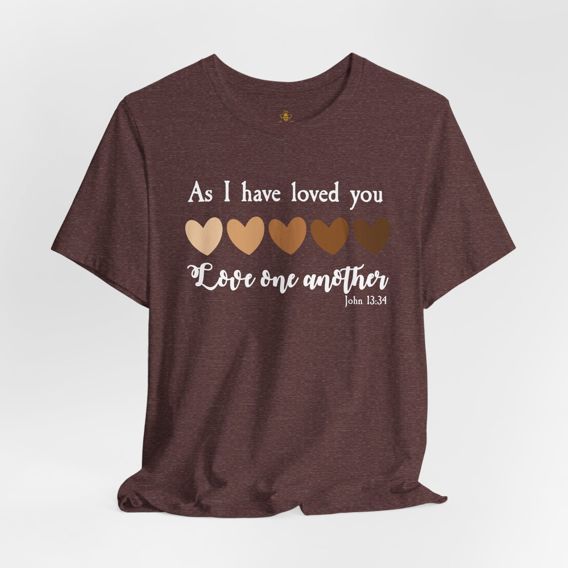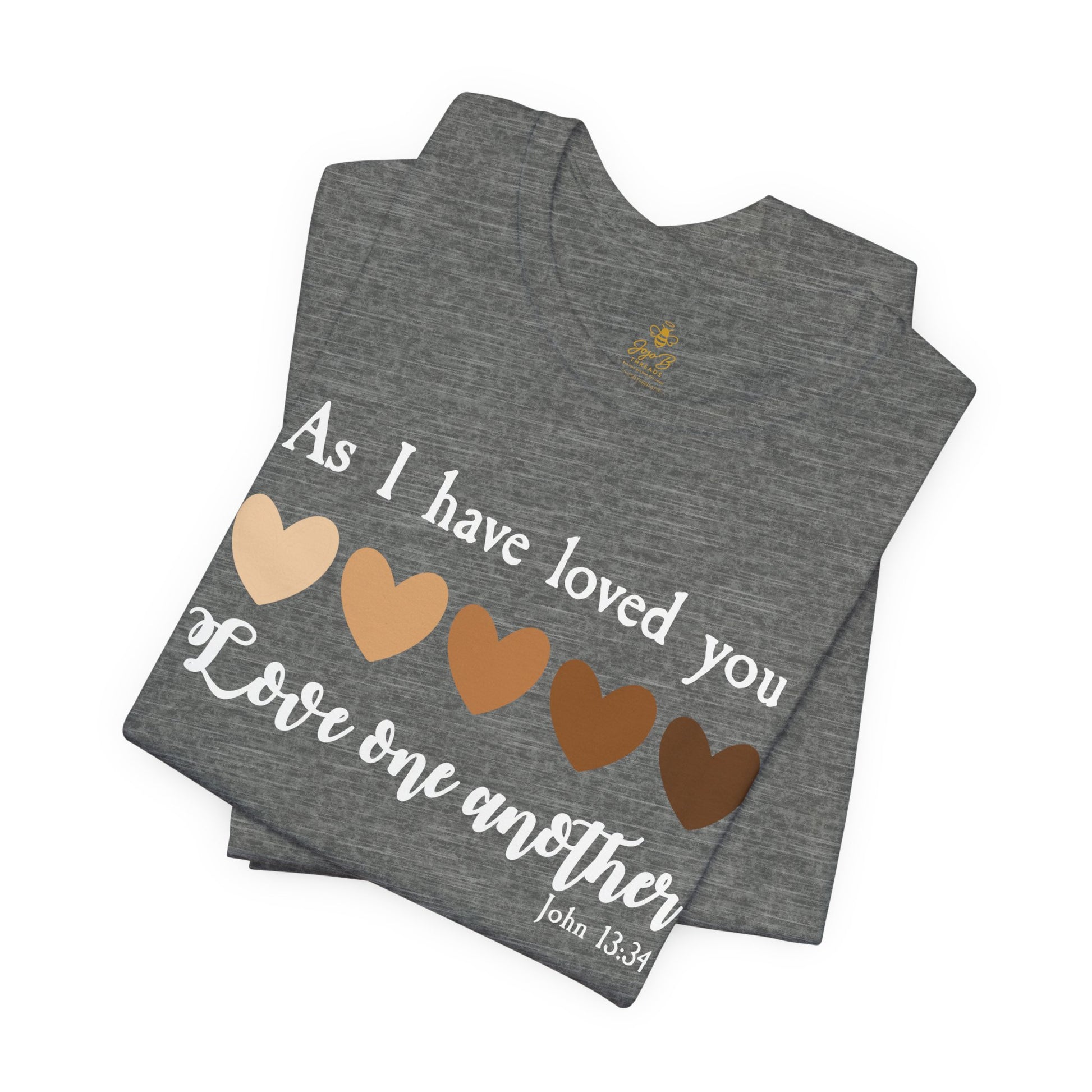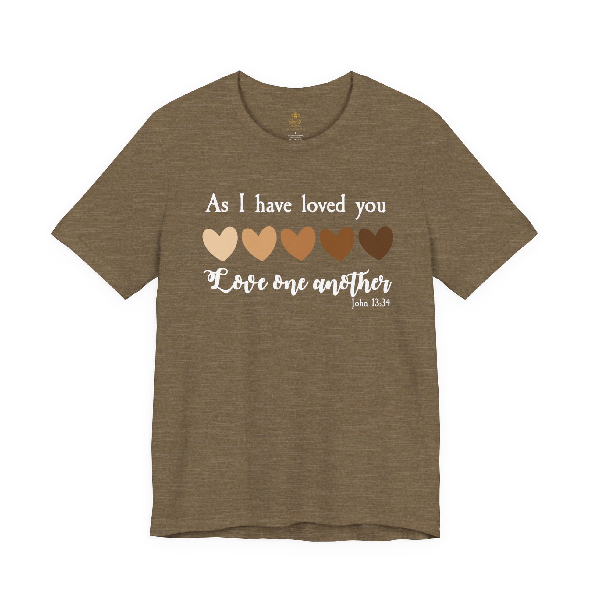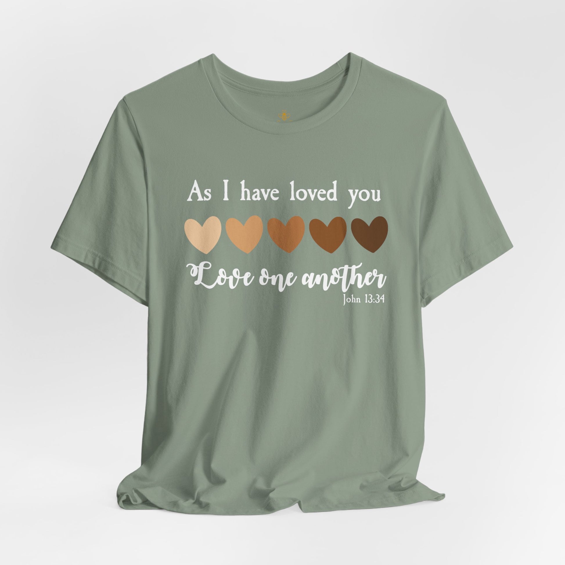 Spread love and faith with this beautifully inclusive “Love One Another” design inspired by John 13:34. Featuring a variety of skin-tone hearts and bold scripture typography, this faith-based graphic is a powerful reminder of God’s call to love without limits. Perfect for shirts, sweatshirts, and tote bags that celebrate unity, diversity, and Christian values.
