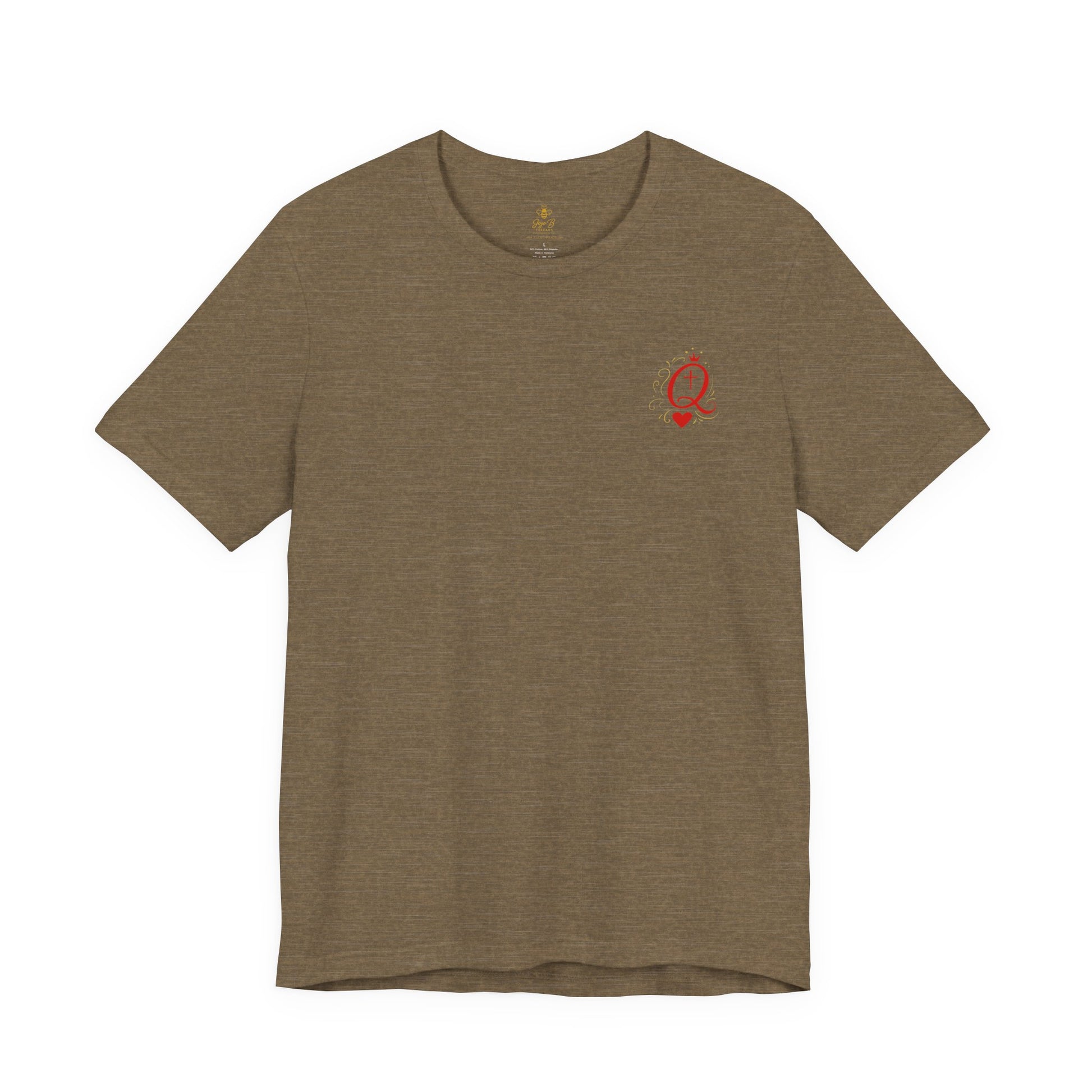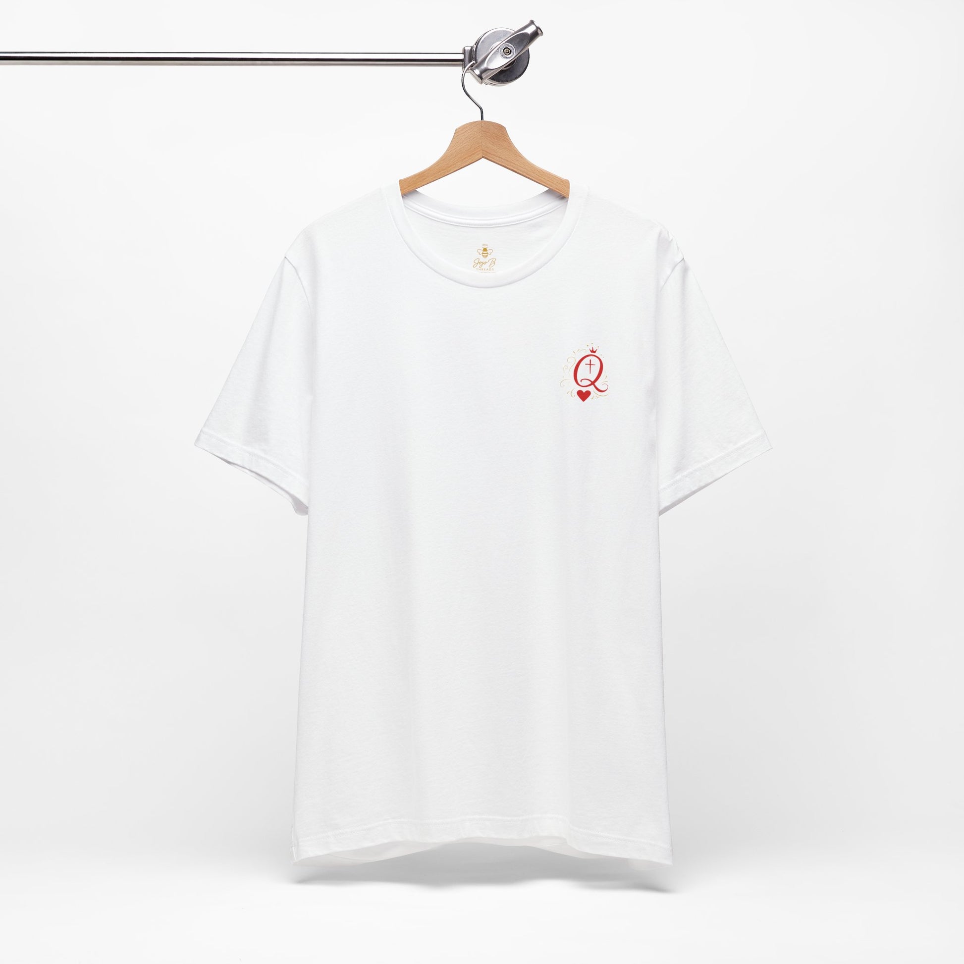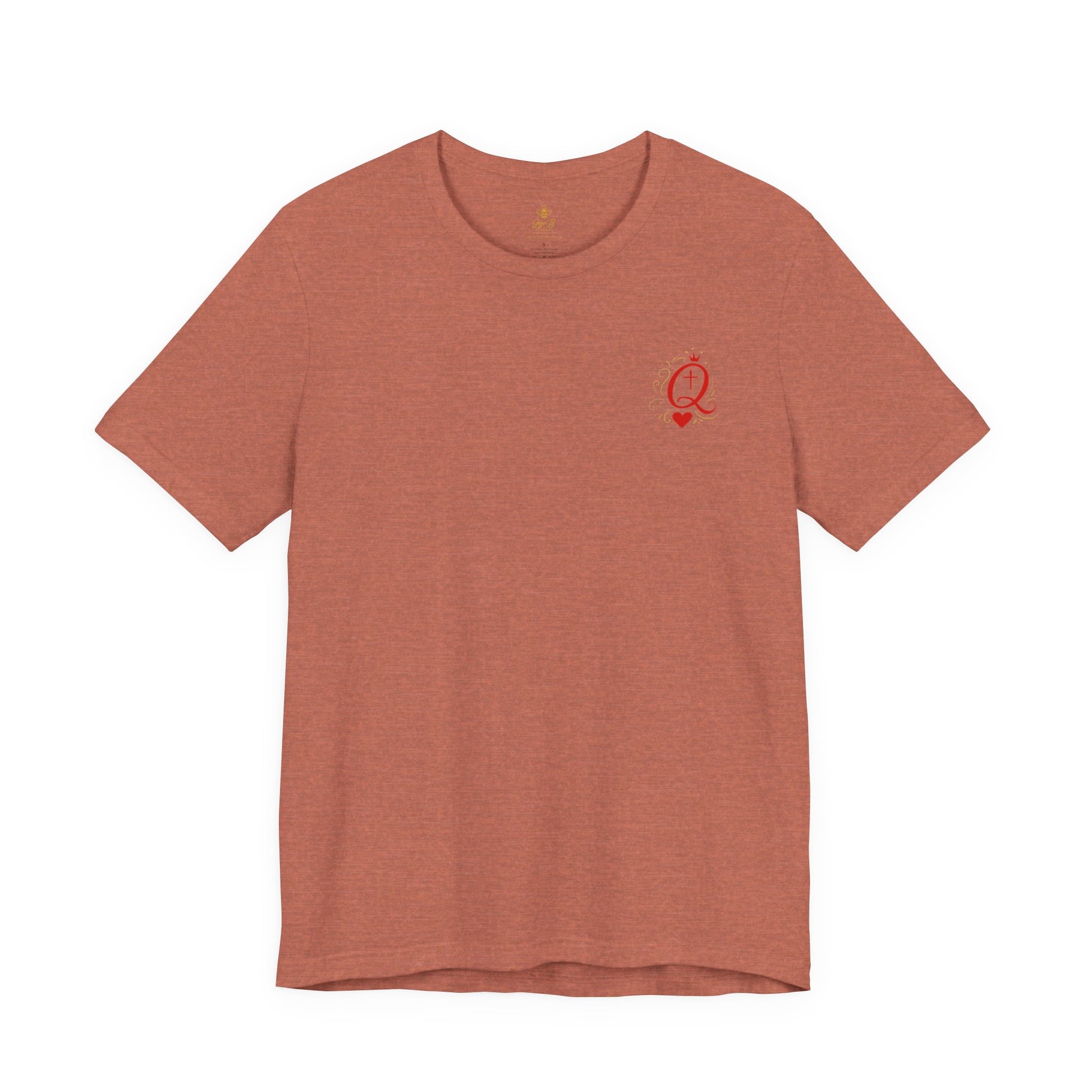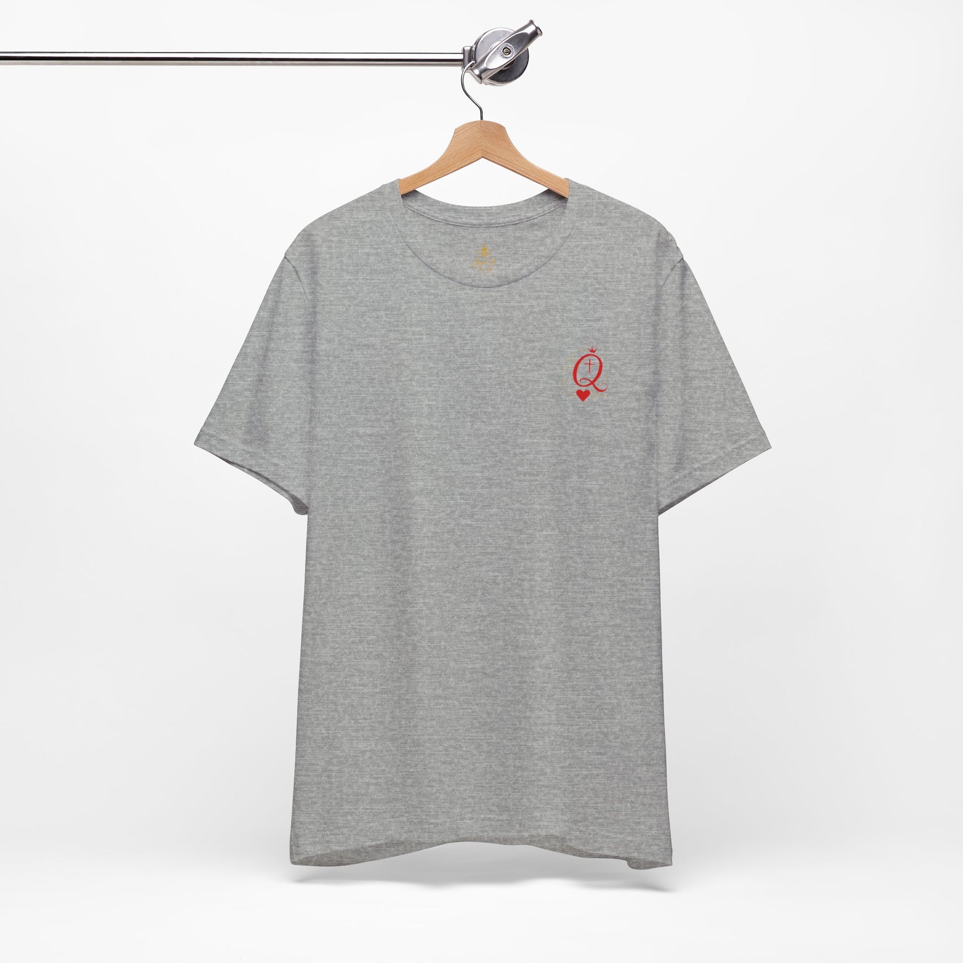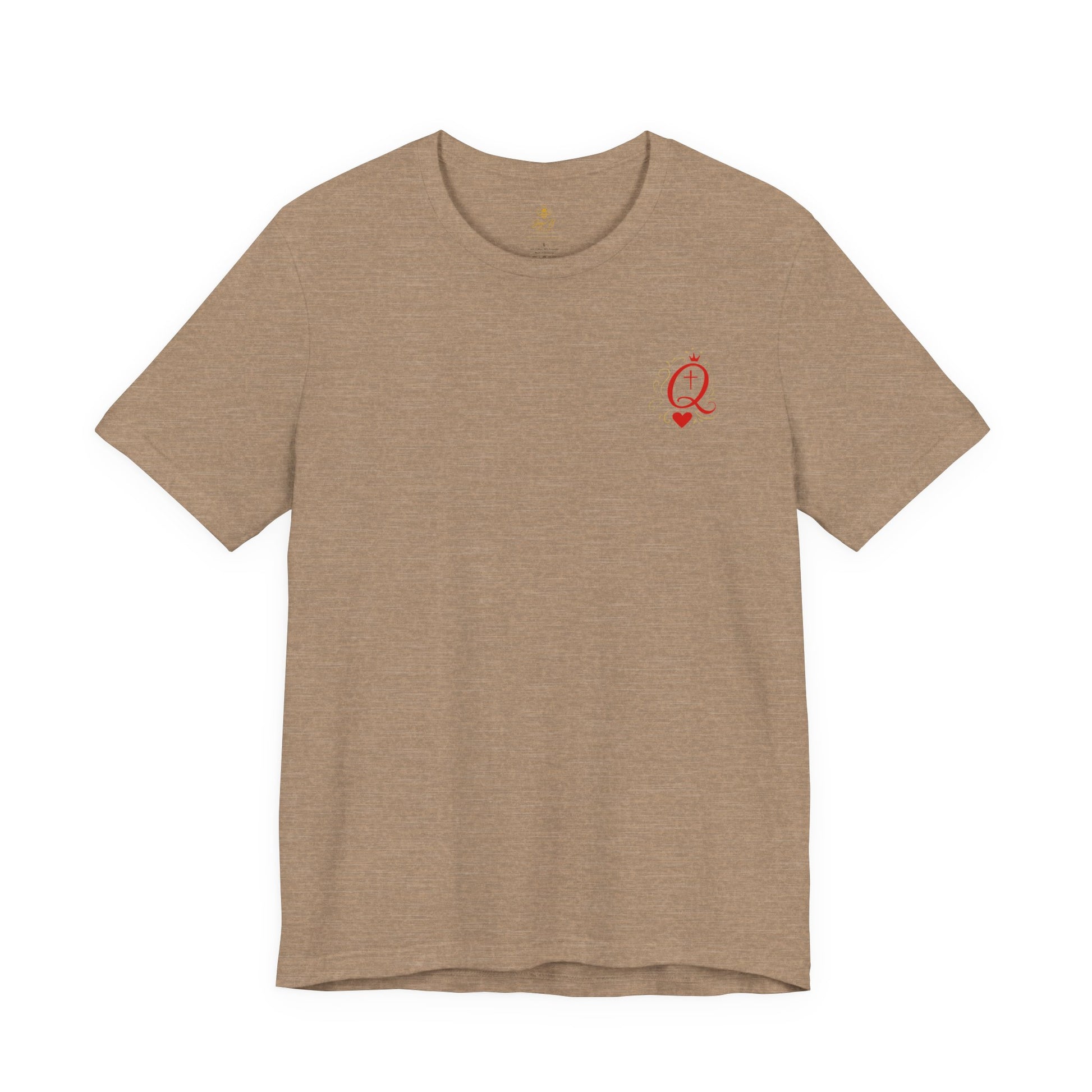 Claim your crown in this bold and minimal “Queen of Hearts” design, featuring a regal Q, crowned and anchored by a heart. Perfect for the woman who leads with love and knows her worth. Whether you're showing off your faith, your strength, or your style, this tee is a reminder that royalty lives within.